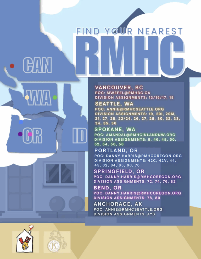 Watch the recording of the Ronald McDonald House Charities Webinar hosted by the District Project Committee. This webinar features guest speakers from various Pacific Northwest Ronald McDonald Houses, and it includes vital information about goals, updates, and how you can be involved.